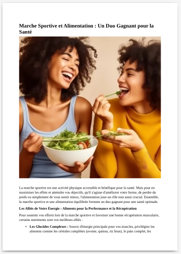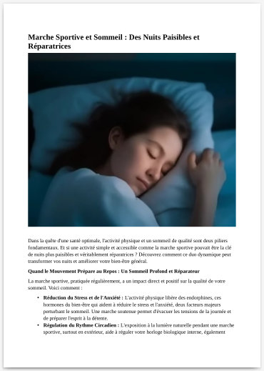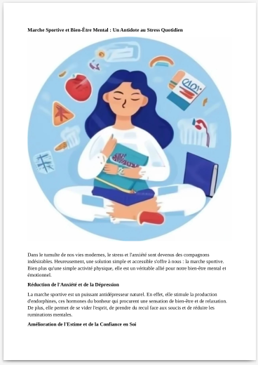 - Réduction du stress: La marche sportive est un excellent moyen de réduire le stress et d'améliorer votre humeur.